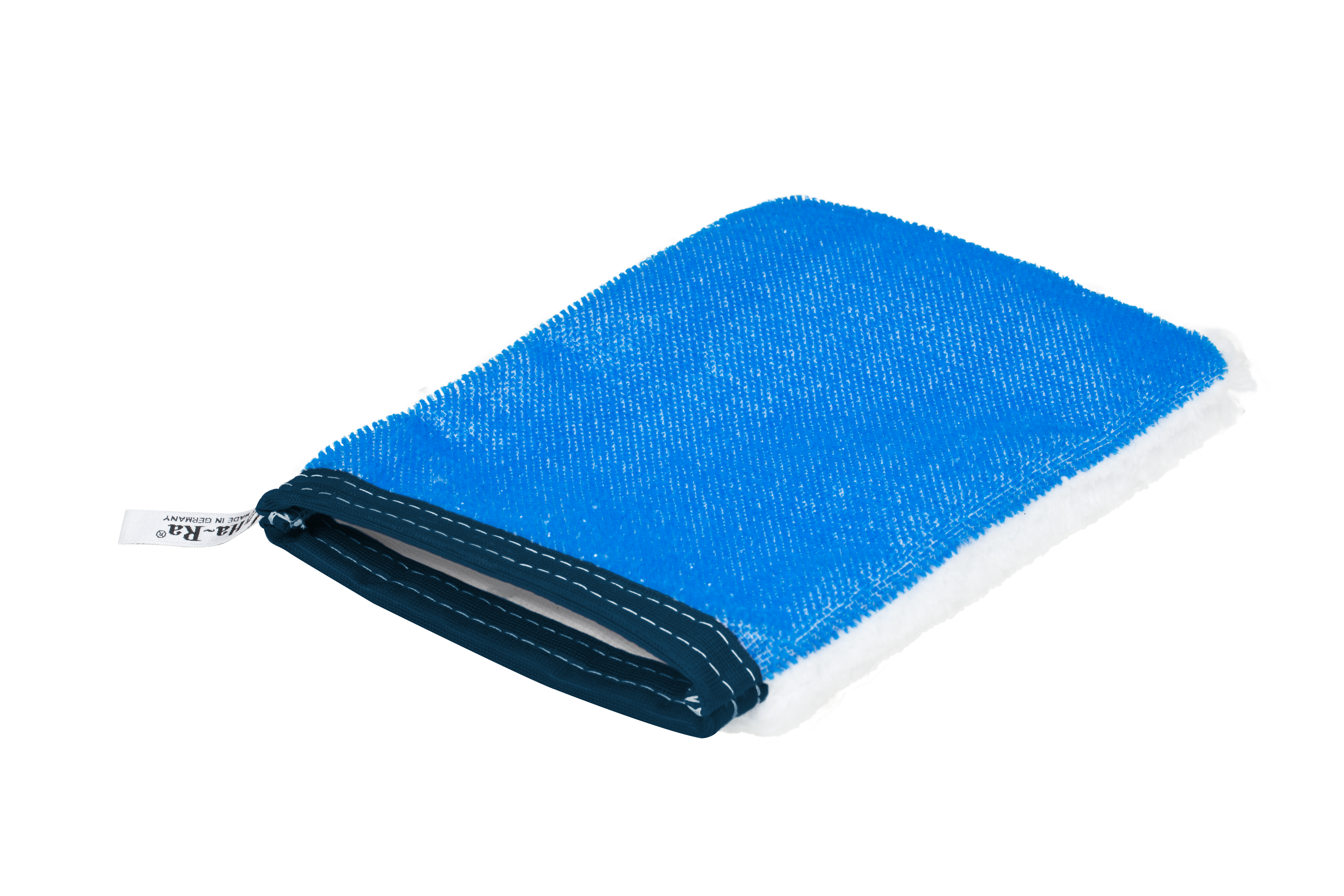 » Er besitzt zwei unterschiedliche Fasern auf den beiden Handschuhseiten: Die blaue Seite zum Ausbürsten des Tierfells sowie zur Entfernung von Schmutz, Fett und oberflächigem, leichtem Zeckenbefall. Die weiße Seite dient dem sanften Reinigen und Pflegen.